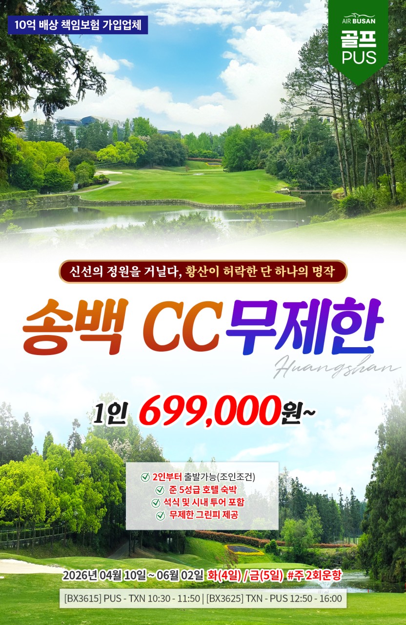 [4월~5월] 중국 4대 명산 황산 송백 CC 무지개 코스 무제한 3박4일/4박5일
