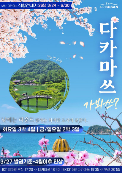 사람과 예술이 만나는 도시 “다카마쓰”, 부산-다카마쓰, 신규 취항!!” GRAND Launching. “런칭 프로모션 특별가 할인" 낮에는 라..