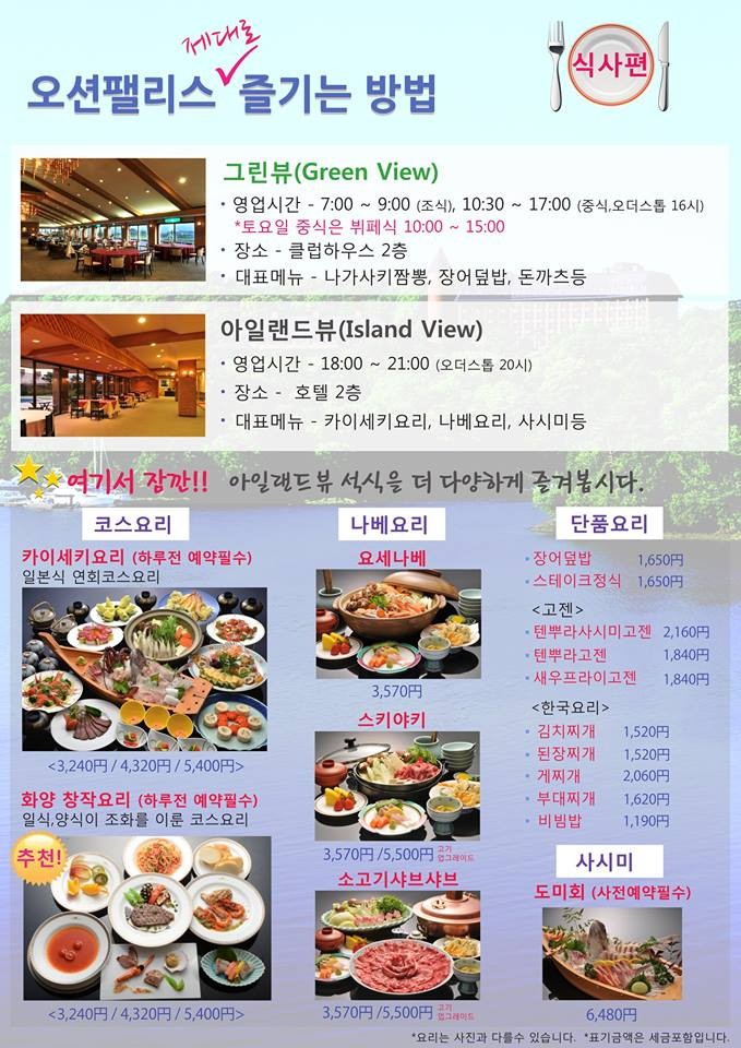 환상의 오션뷰 오션팰리스 라운딩 + 골프리조트 골프비용(그린피,카트피), 송영버스비 포함 !! 호텔 석식은 전골요리 (해물전골,스키야키,샤브샤브)포함!