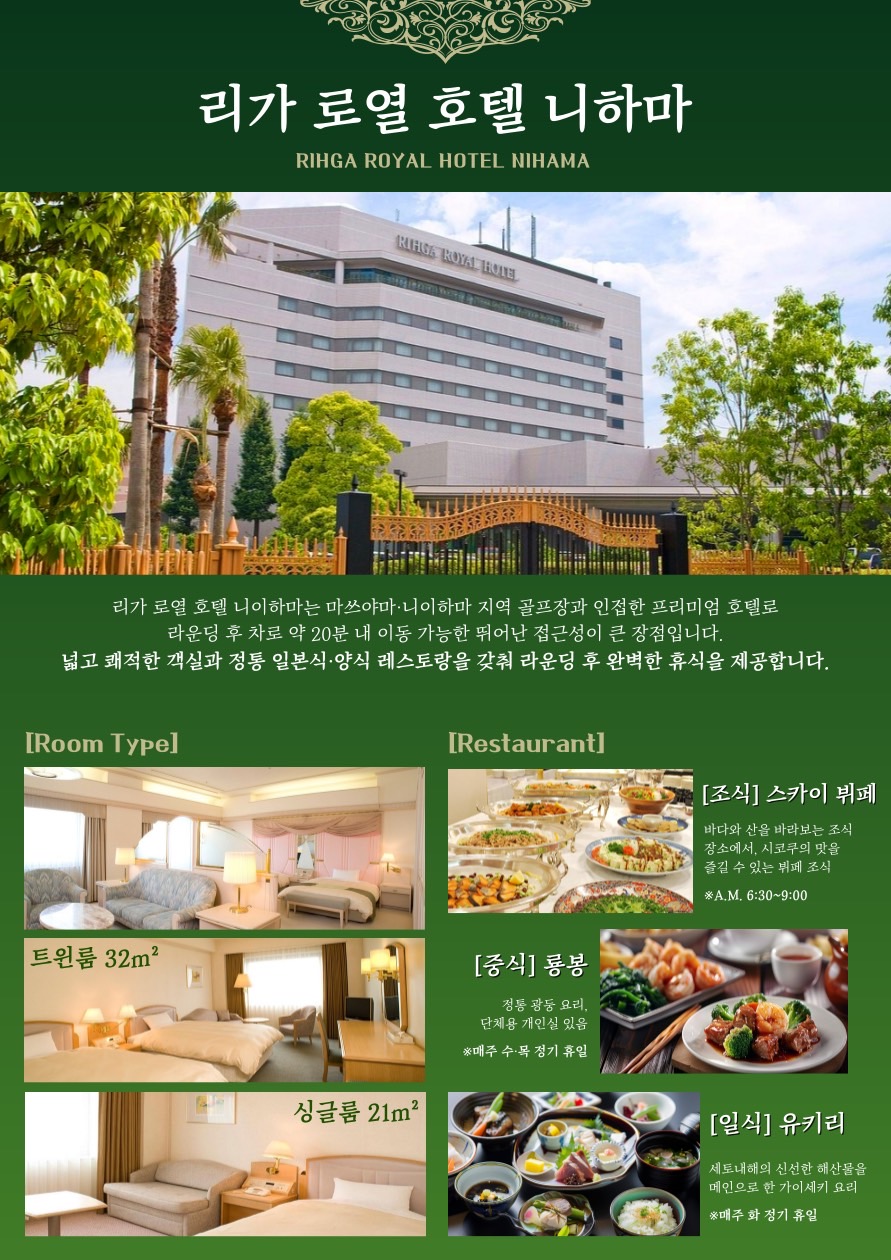 일본 소 도시 골프 선호도 1위 마츠야마에 새롭게 소개하는 新 상품, Nihama GOLF TOUR Launching !!! 마츠야마 공항에서 1시간 거리 고요한 휴식의 도시