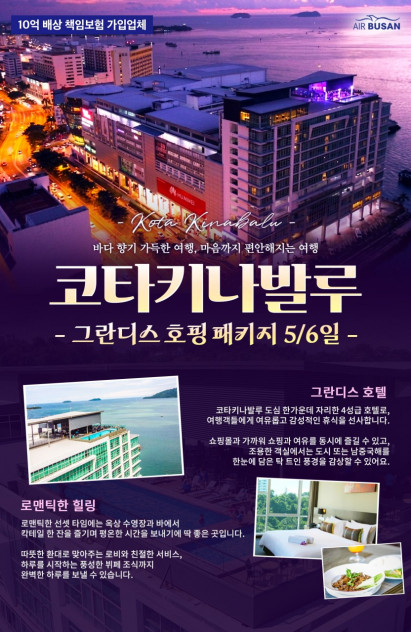 그란디스 호텔 – 가성비와 뷰를 모두 잡은 완벽한 선택!! 코타키나발루의 매력을 슬림하게 알짜배기만 쏙! 호핑투어 & 시내관광 포함 & 자유일..