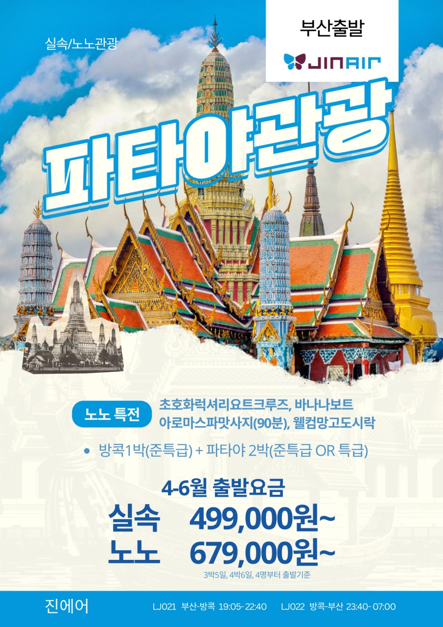 [4월~6월] 태국 방콕/파타야 관광패키지 3박5일/4박6일