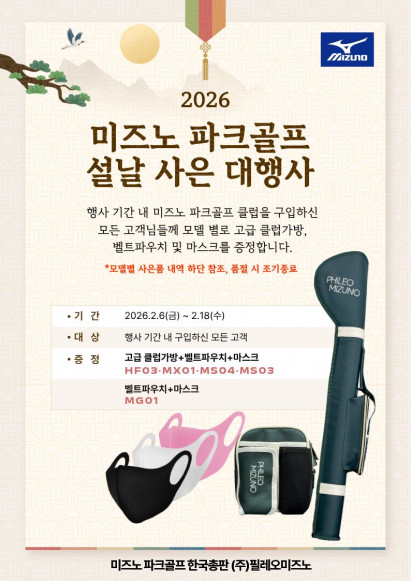 행사 기간 내 미즈노 파크골프 클럽을 구입하신 고객님들께 모델별로 고급 클럽가방, 벨트파우치 및 마스크를 증정합니다.