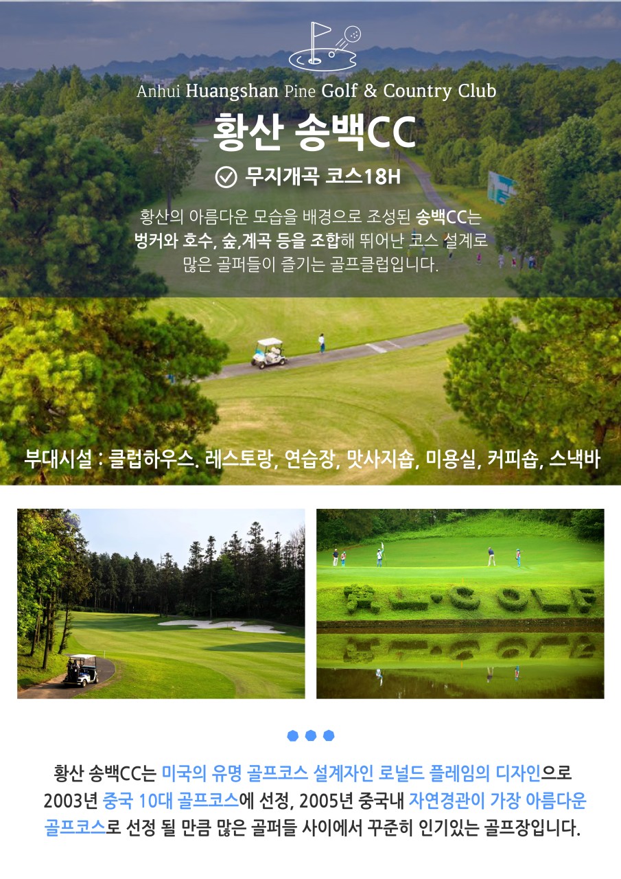 중국 10대 명문 골프장 송백cc, 자연경관이 아름다운 골프장으로 선정되어 정말 황산의 그림 같은 풍경 속에서 라운딩을 즐겨보시는걸 강추드립니다.