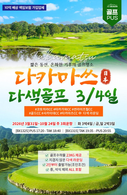 부산-다카마쓰 전세기 골프! 짧은동선, 온화한기후 다카마스 명문 골프 #일본골프 시내 중심 다색 품격 골프