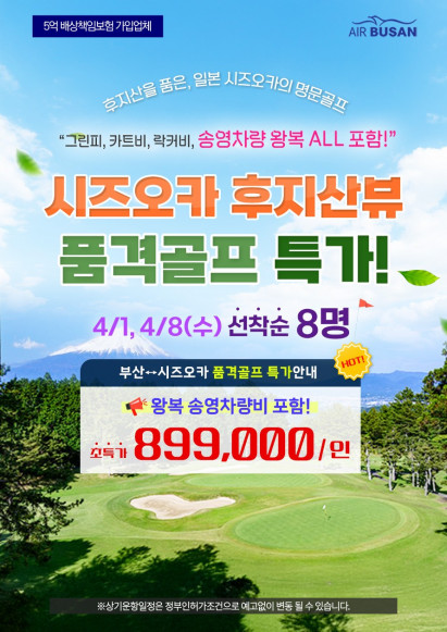 후지산뷰와 함께하는 후지산 골프팩!! 흐드러지는 벚꽃의 계절과 푸르른 신록의 계절을 시즈오카 골프와 함께 하세요. ✔ 가성비 호텔과 중급골프장..