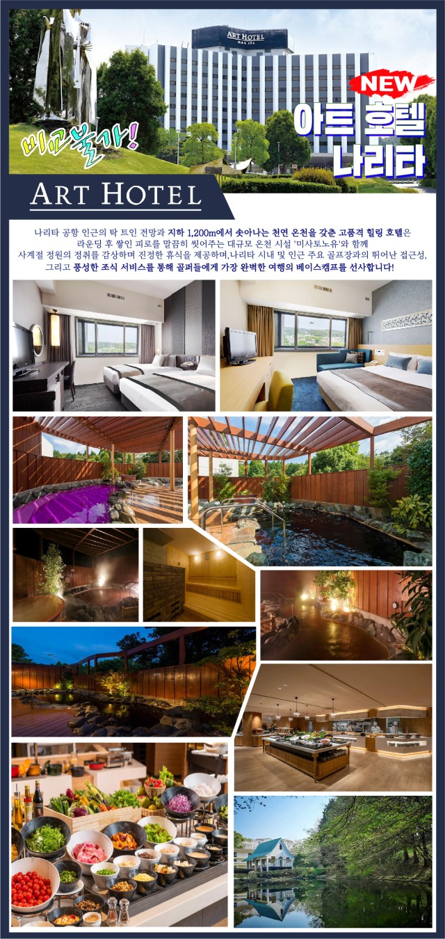 ART 호텔 나리타천연온천(고품격힐링) ➡<도착후 최상의 동선과 시간& 한국인 차량가이드안내> 공항-숙소-골프장(30분) 전일정 호텔조식(뷔페)+중식포함가성비골프추천 석식외 올ALL포함