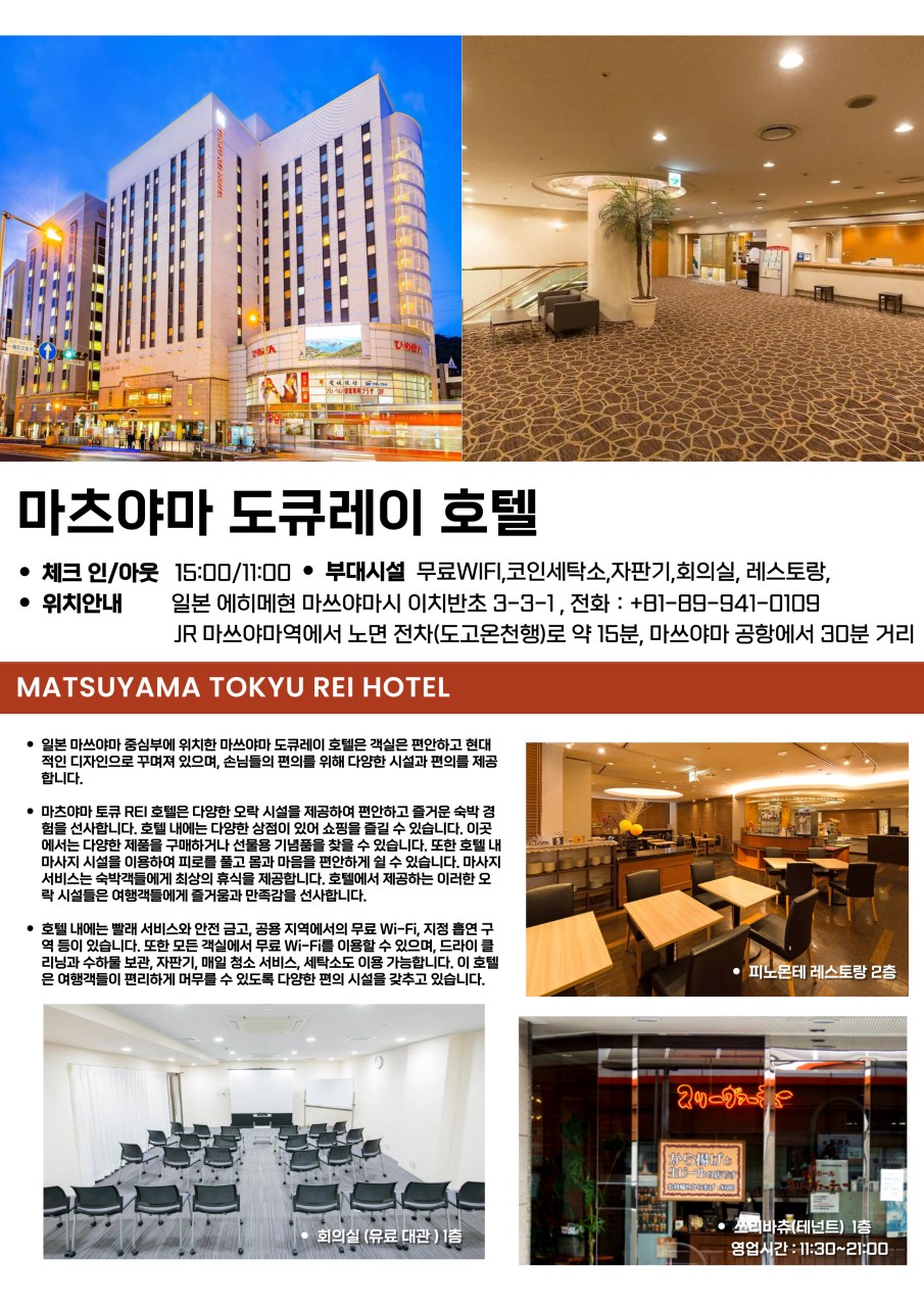 일부 골프장은 점심 식사 기본 메뉴가 필수 포함 조건으로 부킹 될 수 있습니다. 포함될시 1식 1320엔청구, 추가메뉴는 현장지불 - 점심 포함 골프장 : 국제/마쓰야마 (일자에따라)
