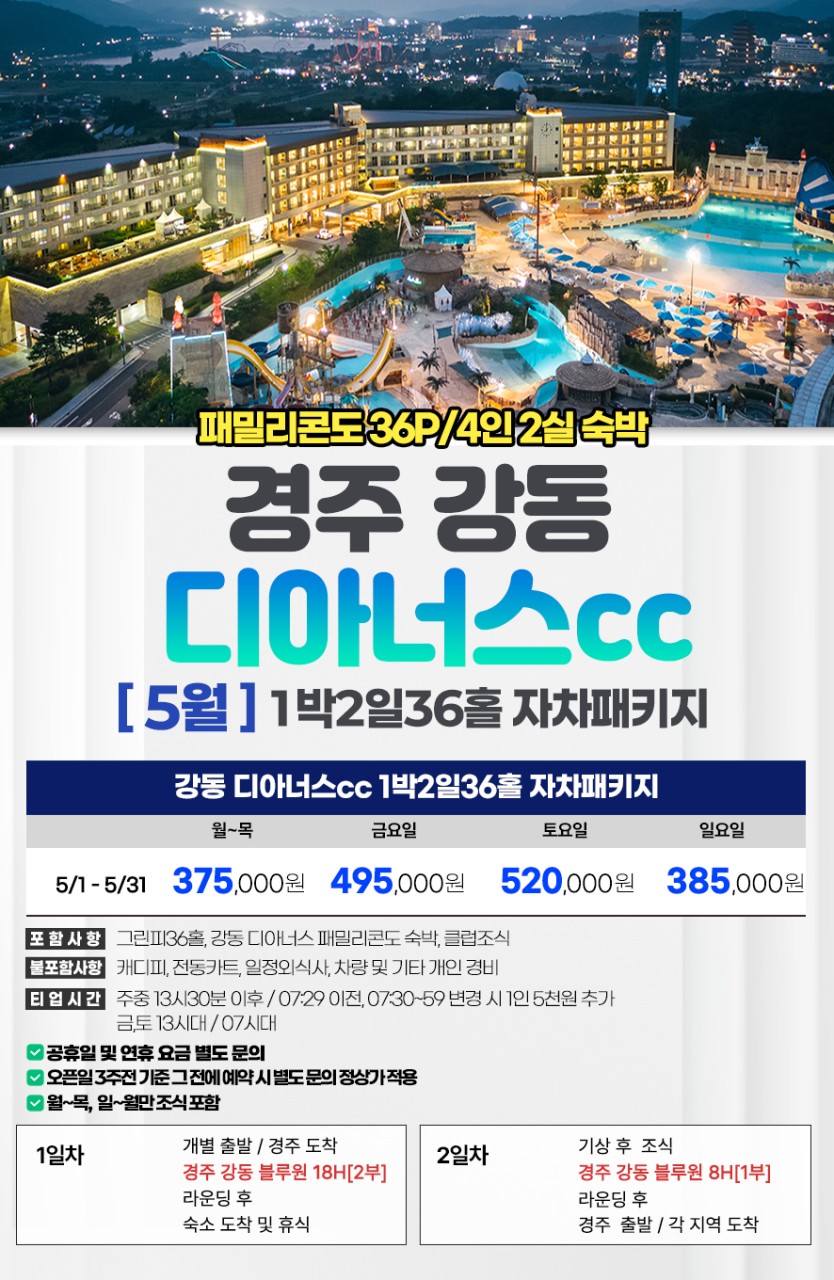 [5월] 경주 강동디아너스cc (구, 경주블루원cc) 1박2일 패키지 특별가 할인