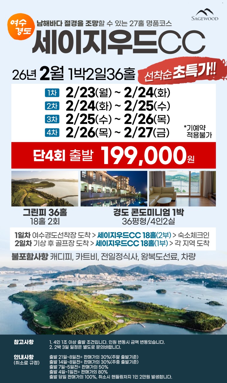 여수경도 세이지우드CC 1박2일, 199,000원