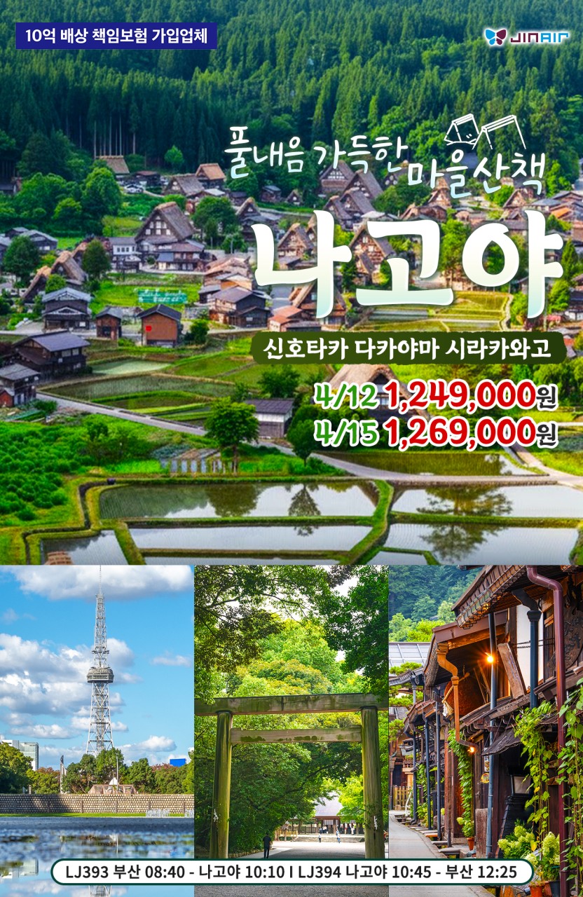 [4월12일/15일 spot 특가] 나고야-일본 북알프스 PREMIUM 설국여행- 나고야, 신호타카, 게로 3박4일 POINT