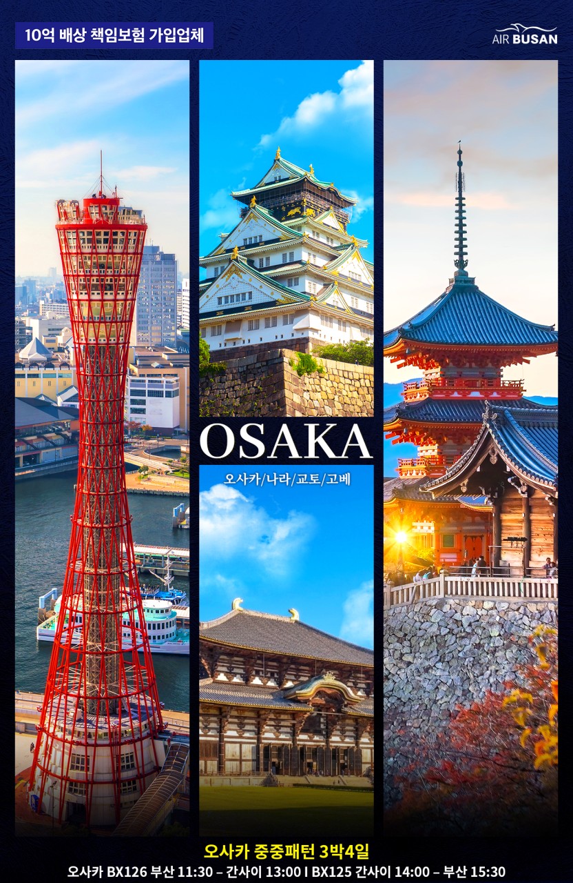 오사카 필수코스 탐방 -먹고 마시고 즐기는 일본여행 NO.1 오사카 -시간이 멈춘듯한 역사와 전통의 도시 교토 -로맨틱한 항구도시 고베 -귀여운 사슴들이 뛰노는 나라