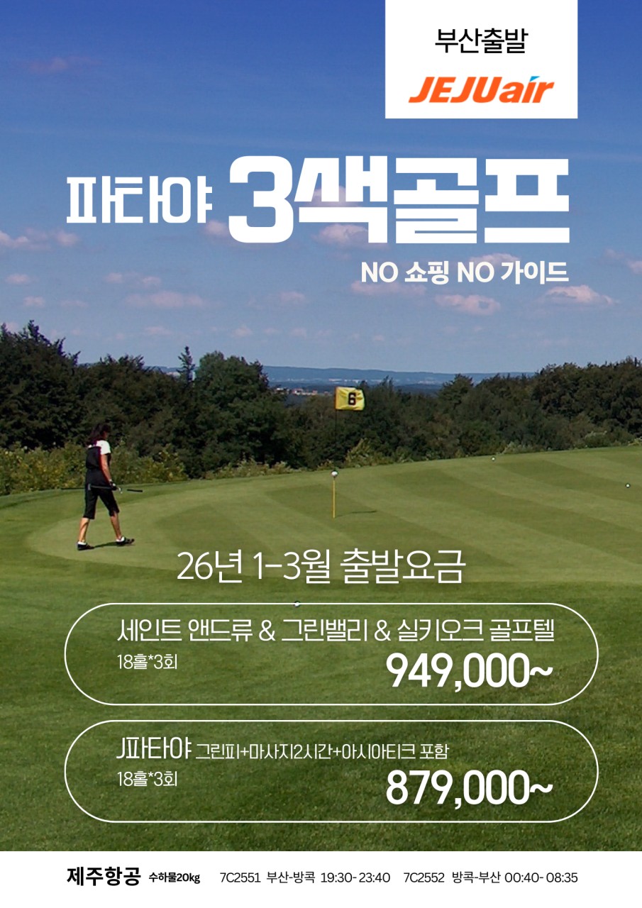 [1월~3월] 부산출발 파타야 골프 3색(NO가이드) 3박5일